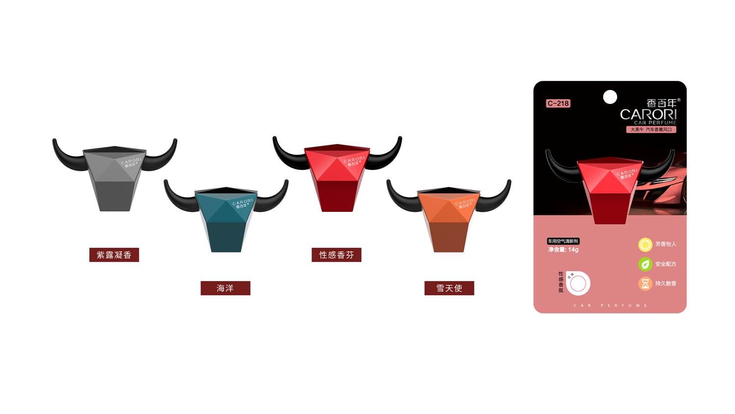 設(shè)計(jì)靈感來自勇武的西班牙斗牛,形象詮釋了人生應(yīng)永不言敗,奮發(fā)向上的美好品質(zhì)!正面采用切面設(shè)計(jì)搭配金屬噴漆與UV的獨(dú)特工藝,棱角分明、剛毅并重。其次面與面之間的轉(zhuǎn)折使光影變化更為豐富,放在車載風(fēng)口,盡顯別樣的光影時(shí)尚美學(xué)!